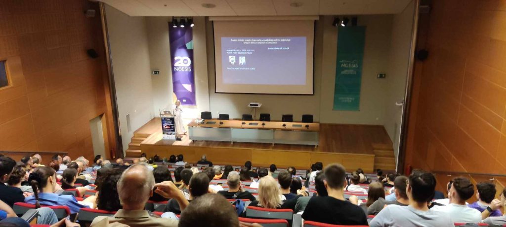 The leading actor of this first talk is Fabiola Giannotti, General Director of CERN, showcasing her experience in CERN during an event at the University of Thessaloniki.